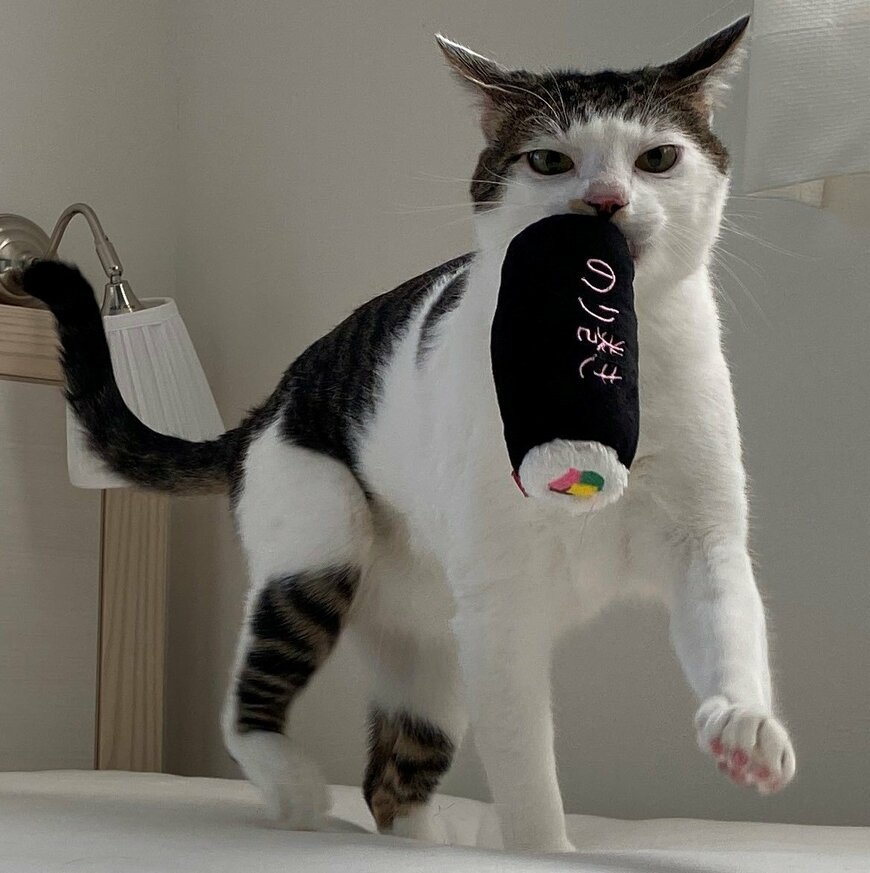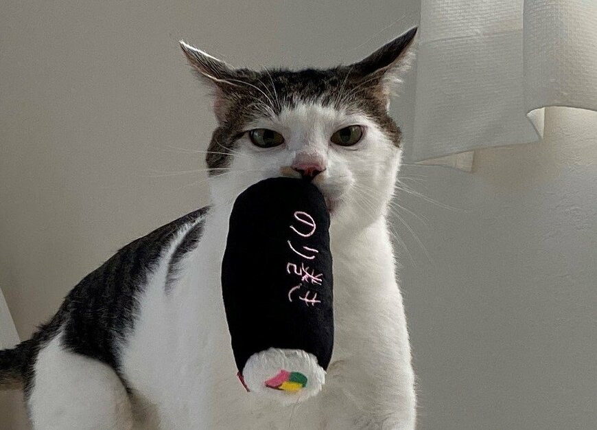普段から新しいおもちゃが大好きなのだそうで、こちらの恵方巻のマスコットにも夢中の様子。一生懸命に運んでいるのが伝わってきますね。