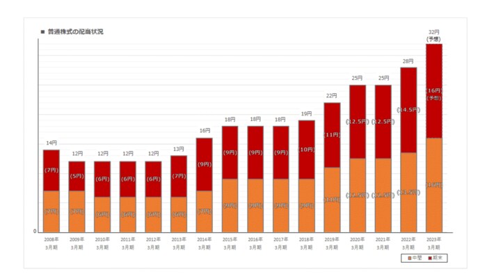 最後に三菱UFJフィナンシャル・グループの配当推移を確認しましょう。
