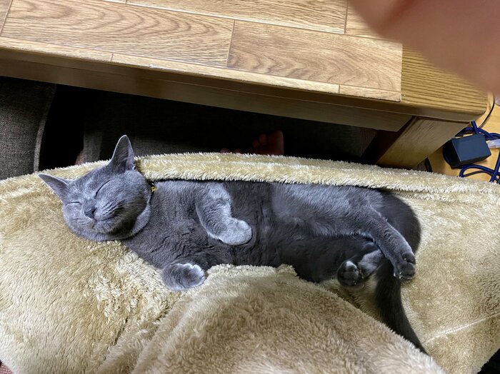 笑ってる……!?嬉しそうに眠る保護猫さん