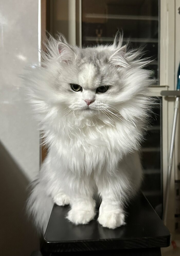 「妻の腹筋も爆発」長毛猫さんのスーパーサイヤ人風な姿が話題に