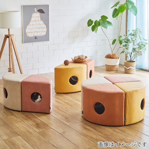耐荷重80kgあるので、猫だけでなく人間も座ることができます。カラーは、アイボリー・オレンジ・イエロー・ピンクの4色があります。