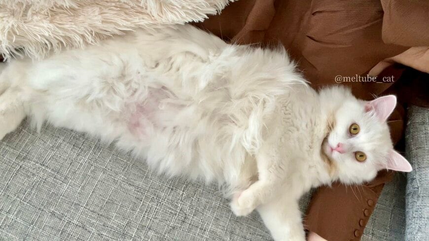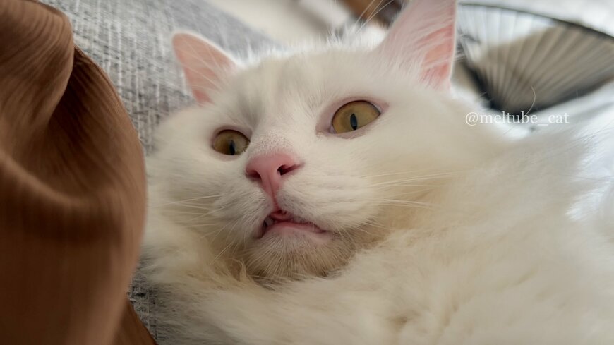 成長したマオくんは、キリッとした眼差しと、真っ白でモコモコの毛並みがとっても印象的です!クールな風格を備えたイケメン猫さんに大成長を遂げたマオくんですが、現在もとっても甘えん坊さんだといいます。