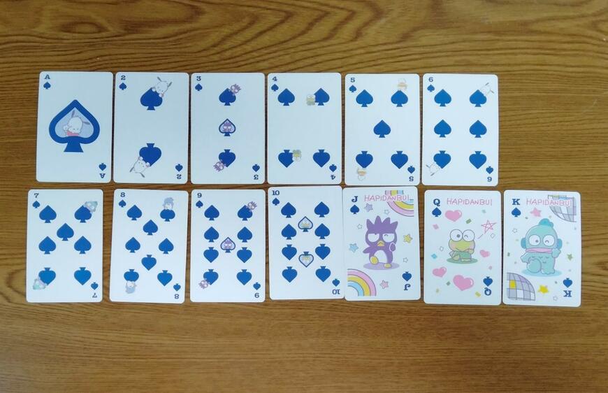 こちらはスペードです。スペードの窓からこちらを覗いて手を振っている「ポチャッコ」のエースのカードなどがかわいいです。