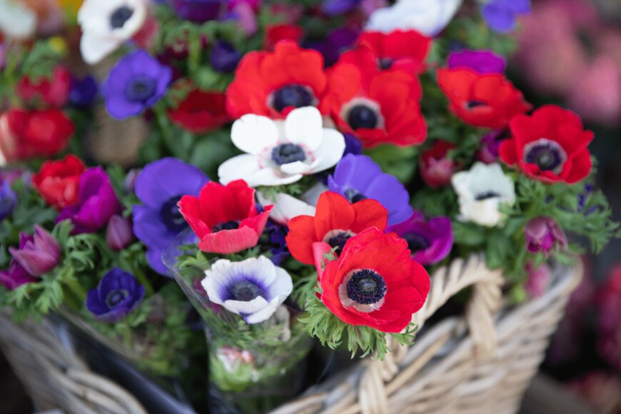鮮やかな花色と優しい感触の花びらが魅力のアネモネは、2月~5月に開花期を迎える多年草。秋には球根が、冬には開花鉢が流通します。