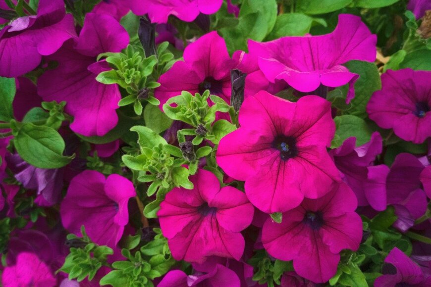 色鮮やかな明るい雰囲気の花を咲かせるペチュニアは、春から秋にかけて楽しめる一年草。パステルカラーやビタミンカラー、ニュアンスカラーなど豊富な花色が揃っています。