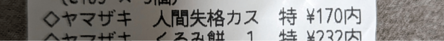 レシートの画像をよく見ると、そこには「人間失格カス」という衝撃的な言葉が印字されているのです。インパクト抜群の商品名だけでなく、レシートに記されている文字にも驚かされてしまいますね。