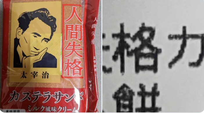 パッケージに大きく印字された「人間失格」の文字が目を引く、カステラサンドを購入した@kirakusgwrさん。