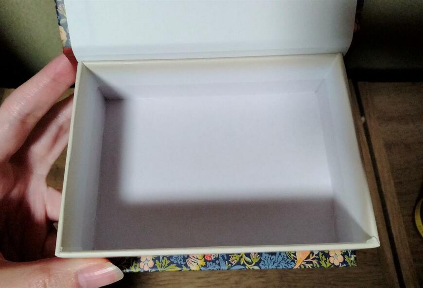 こちらがセリアで販売されている「ウィリアム・モリス」デザインのブック型ボックスです。写真のように、大きいサイズと小さいサイズがあります。