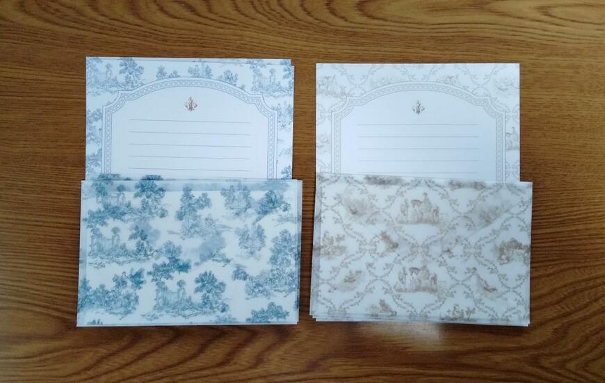 のどかな田園風景や美しい貴婦人が描かれている素敵な「トワルドジュイ」のレターセットとなっています。