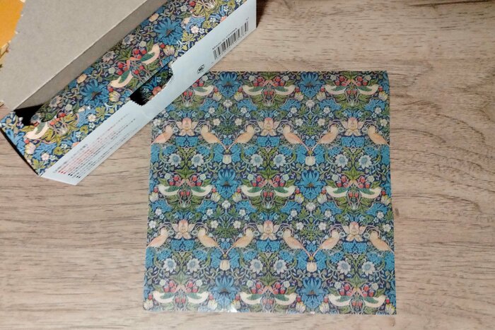 こちらは「いちご泥棒」のデザインのワックスペーパーです。モリスのデザインの中でも、特に愛好家の多いデザインです。