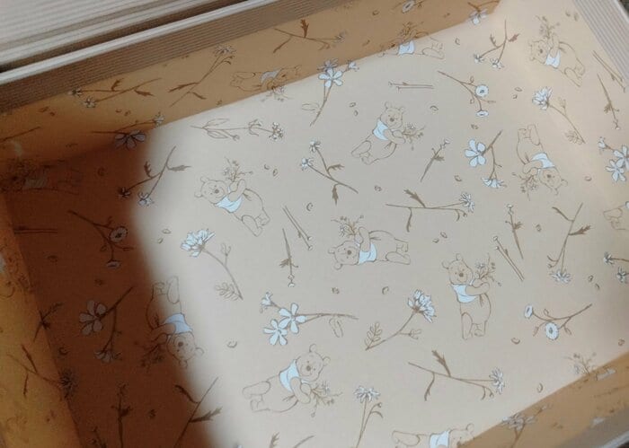 ボックスの内側にも、プーさんがたくさんデザインされています。ナチュラルなデザインが素敵なアイテムです。