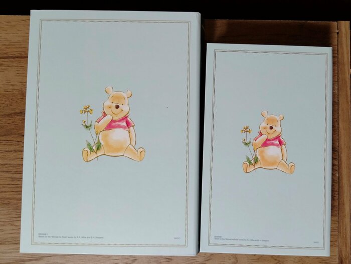 本の背表紙にあたる側面部には、「Winnie the Pooh」という英文とプーさんがデザインされています。