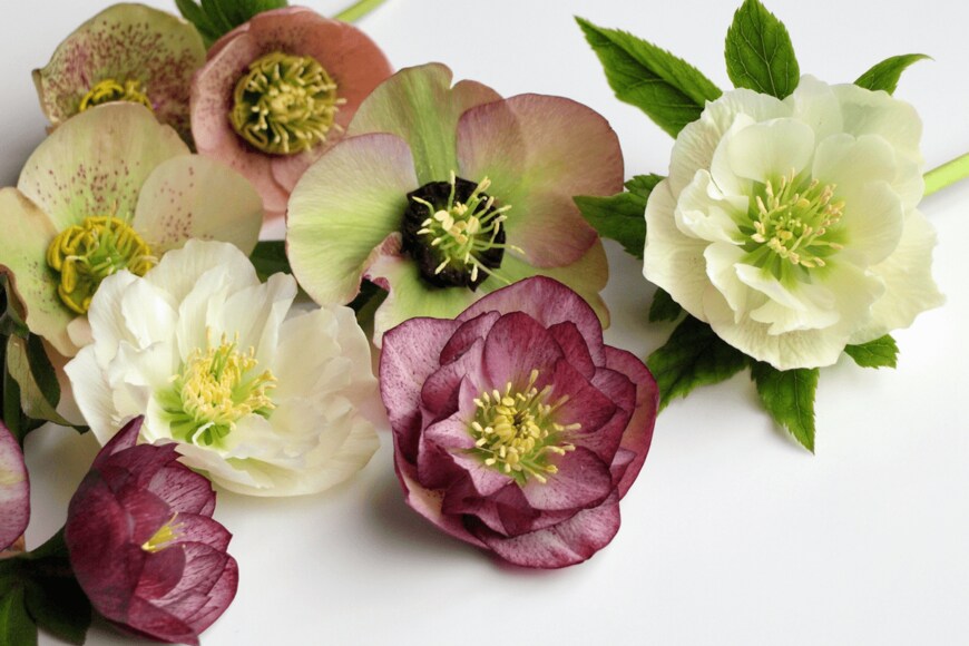 白やピンク、赤紫、クリーム色など花色が豊富なクリスマスローズ。主役となるクリスマスローズが決まったら、その色に似合うカラーコーディネートを工夫しましょう。