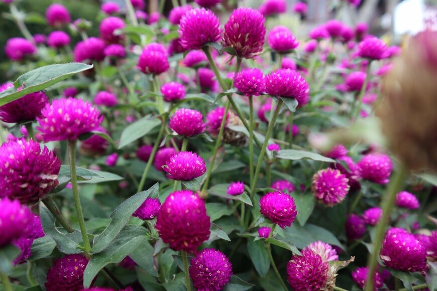 ポンポンとした丸いかたちの花を咲かせるセンニチコウ。気温が安定した5月頃から晩秋の11月頃まで、長い間開花が楽しめます。