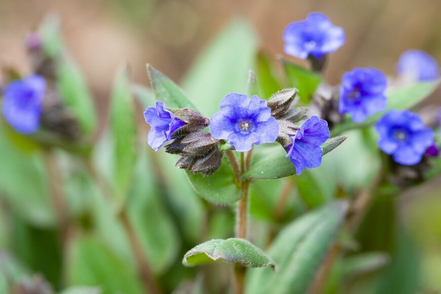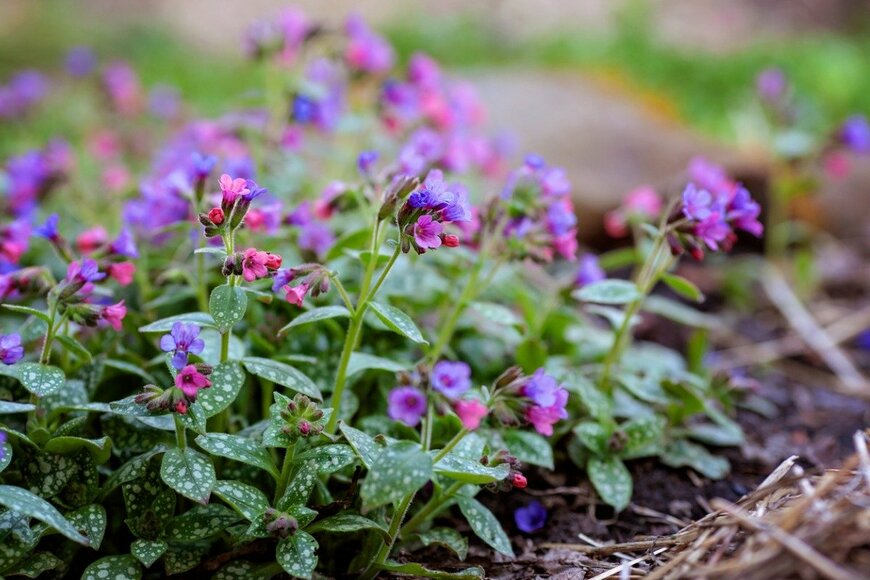 ブルーやピンク、ホワイトの花が可愛らしいプルモナリアは注目の多年草。開花が進むにつれて花色が変化する品種もあり、同じ鉢でカラフルな色合いを楽しむことができます。