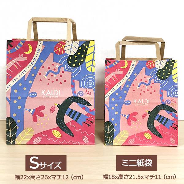 バレンタイン向けの可愛らしいデザインが描かれた、カルディオリジナルの2023年バレンタイン柄紙袋。値段もSサイズ15円、ミニサイズ10円(ともに税込)なので、プレゼント入れとしてもいいですね。