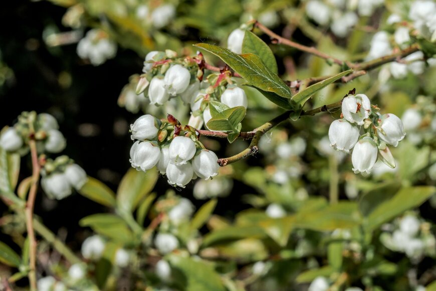 ベル状の白い小花がキュートな「ブルーベリー」など