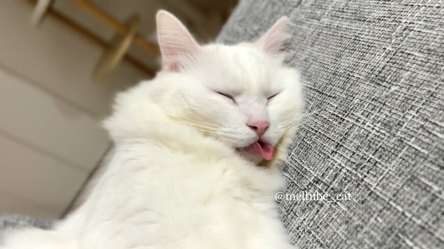 ビロンと出た舌に笑っちゃう……!愛くるしい寝顔の猫さんが話題