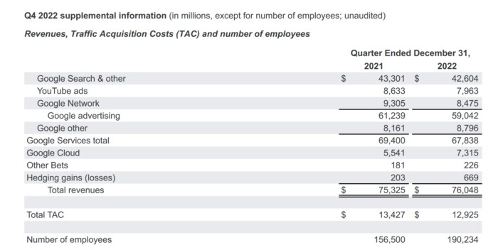 先日公表された、Alphabetの2022年第4四半期決算を確認しましょう。
