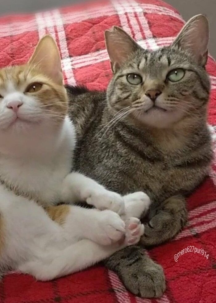 リプライ欄には「可愛さで涙が出る」といった声のほか、「メロンくんにあんよを全部乗せるプリンちゃん、可愛い……」「良い写真ですね、プリンちゃんは可愛いし、メロンくんは凛としてる」「プリンちゃん『お兄ちゃんに足乗せてるの。いいでしょ!』」といった書き込みが続出しました。