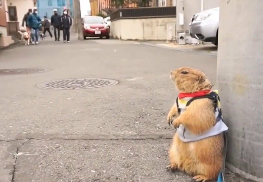 話題になったのは、オグロプレーリードッグのブイくん。3歳の男の子です。このときのブイくんはお散歩中だったようです。