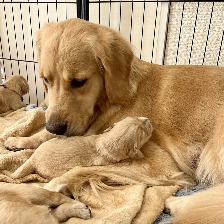 投稿したのは、ゴールデンレトリバーの女の子「ぷぅ」ちゃんと一緒に暮らす「@pu_channeldesu」さん。ぷぅちゃんは2023年1月13日に出産を経て、新米ママになりました。