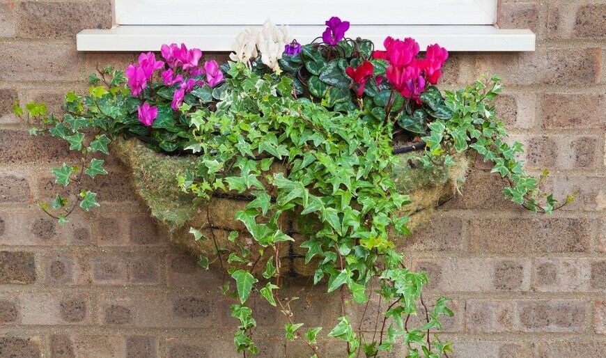 真冬は一旦生育をストップしますが枯れることはなく、暖かさが増すようになるとまたつぎつぎと花芽を伸ばします。常緑のヘデラはしだれる様子がキレイで、ハンギングに最適です。