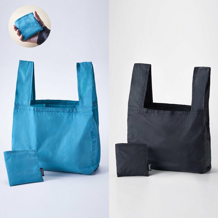コンパクトに折りたたむことができる、持ち運びに便利なエコバッグです。コンビニなどでのちょっとしたショッピングの際にも便利で、想定外の買い物にも対応できる常備バッグとしても重宝します。ナイロン素材を使用しており、軽量で汚れにくいのもポイントです。カラーは、使いやすいブラックと、目を引くターコイズブルーの2色展開。お好みのカラーをチョイスして、ショッピングを楽しんでみてください。