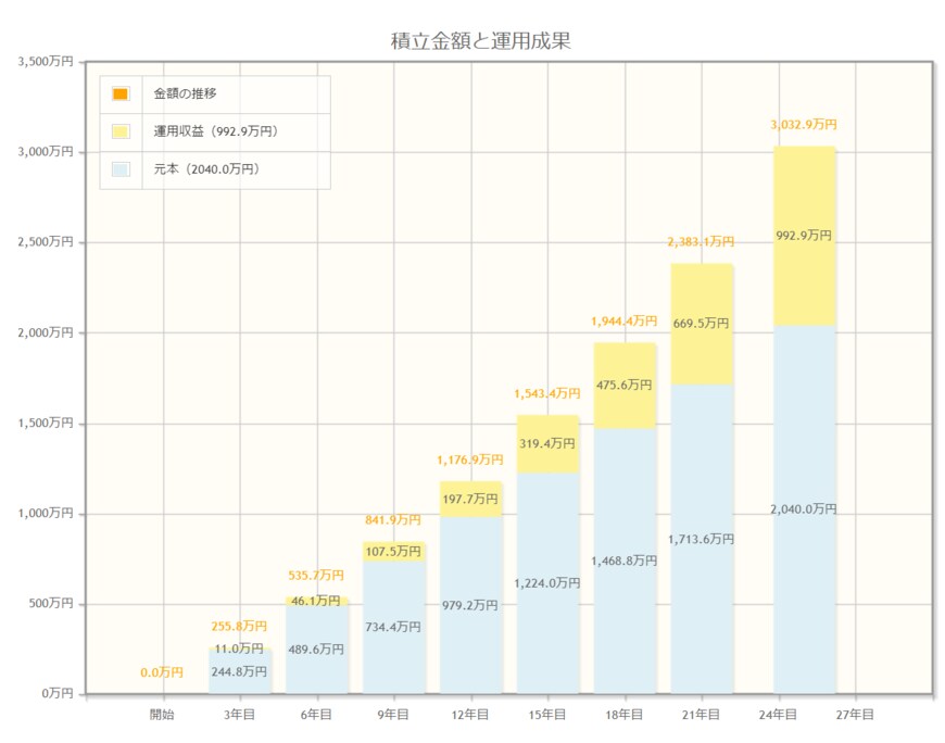 上限額の6万8000円を年利3.0%で25年間積立てたとすると、元利合計で約3000万円もの老後資金準備が可能です(金融庁「資産運用シミュレーション」にて試算)。
