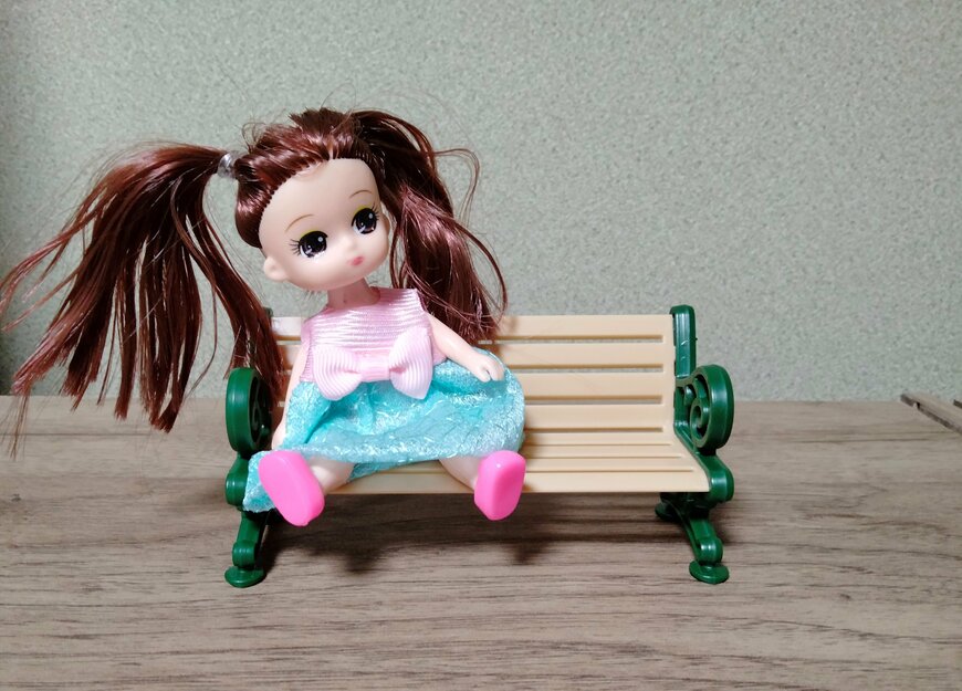 セリアの「公園のベンチミニチュア」は、1/12スケールのアイテムとなっています。14cm前後の人形やマスコットを飾るのにちょうど良いです。