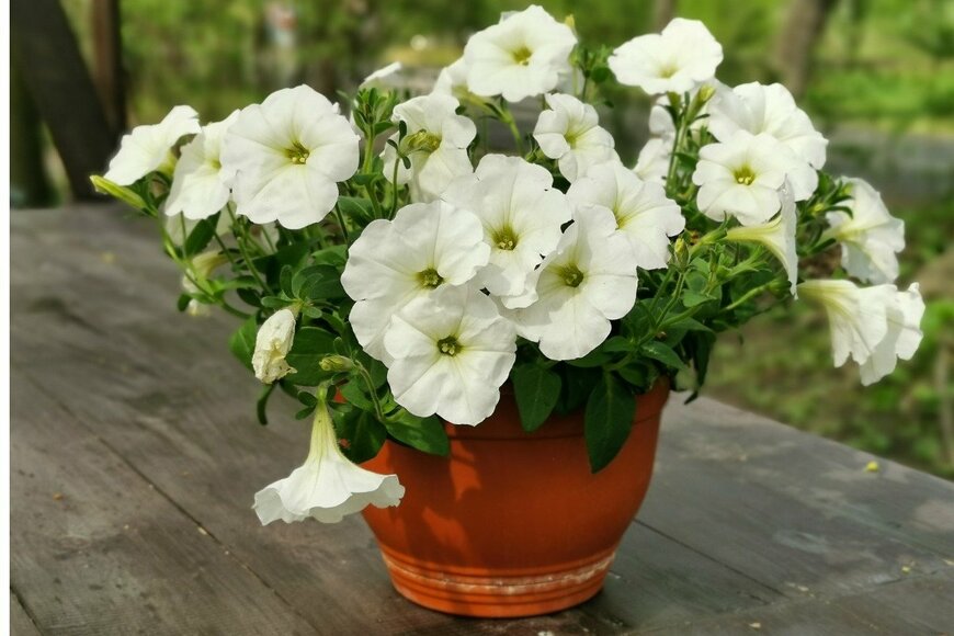 ラッパ型のヒラヒラとした花を咲かせるペチュニア。やや大きめの花は次々と開花するため、鉢植えで育てると見た目が大変華やかになります。