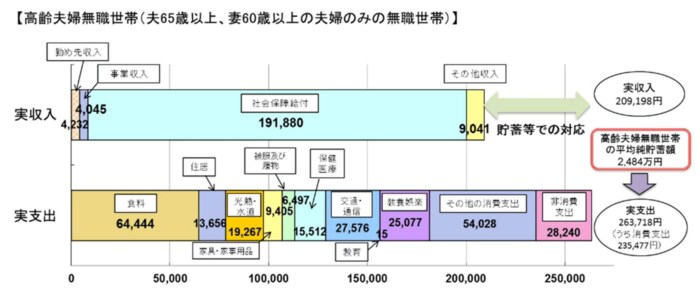 2019年6月3日に公表された金融審議会市場ワーキング・グループ報告書 「高齢社会における資産形成・管理」によると、高齢夫婦無職世帯では毎月5万4520円が不足します。