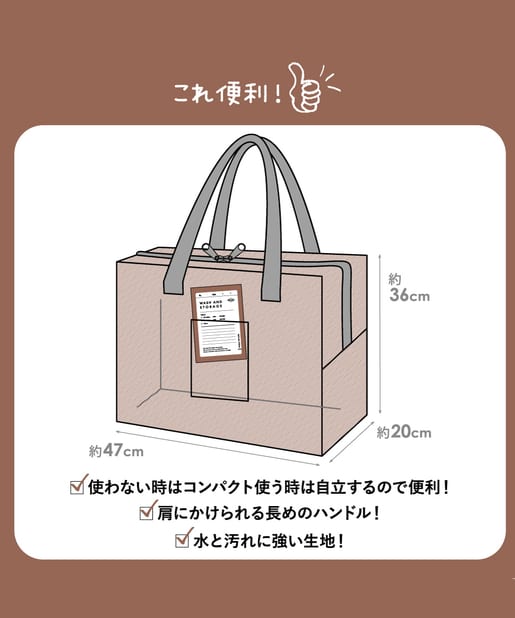 また、半透明生地なので、中に何が入っているのか一目でチェックできたり、使わない時はコンパクトに折りたたんで収納できるのも人気のポイントとなっています。