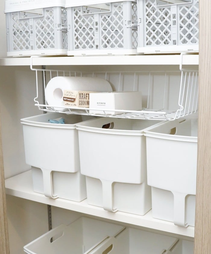 後部に傾斜があり狭い棚でもスムーズに出し入れができたり、戸棚での使用以外にもシンク下やクローゼットの整理整頓にも役立ちます。