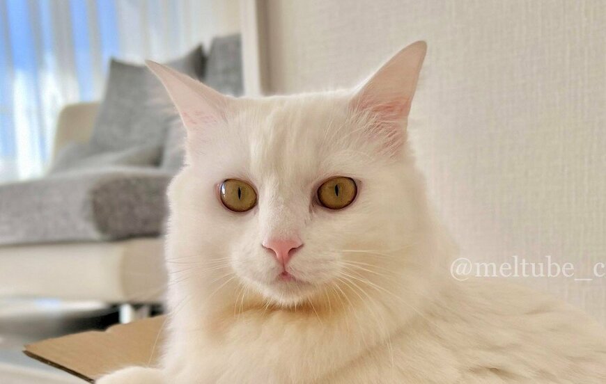 投稿された写真に写るマオくんは、黄金色に輝くまん丸の瞳を大きく開けて、こちらに視線を送っています。まさにイケメン猫の風格を漂わせながら、凛とした表情を浮かべていますが……?