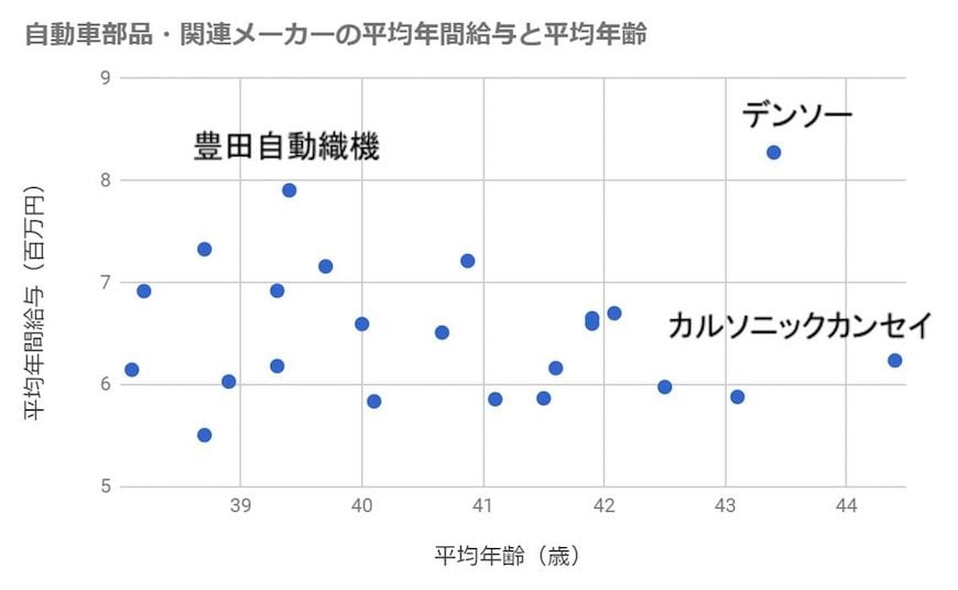 デンソーと豊田自動織機が全体の平均年収をけん引