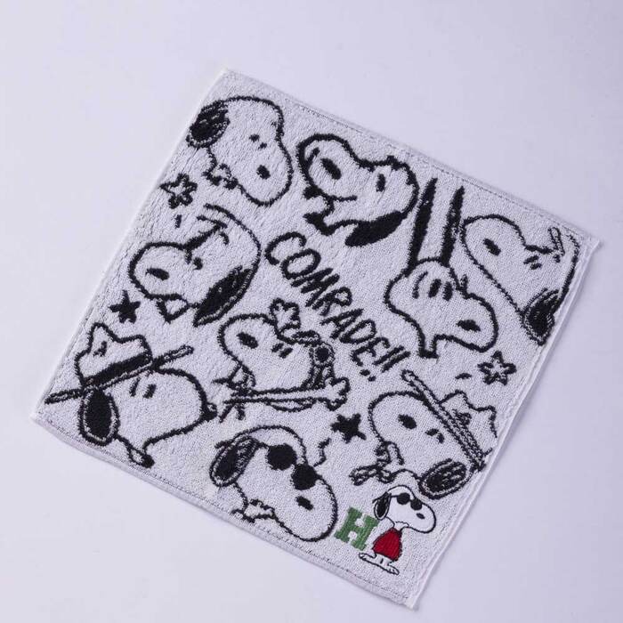 笑ったり驚いたりとスヌーピーのいろんな表情が楽しいタオルハンカチです。右下にはイニシャルごとに異なるスヌーピーの刺繍があしらわれています。ハンカチはちょっとしたプレゼントに最適なアイテムですが、イニシャル入りなら特別感をプラスできるのが魅力的。大切な人とおそろいで持つのもいいですね。