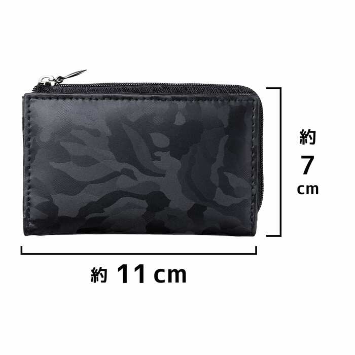 牛革素材の小銭入れです。透かし迷彩柄がおしゃれなデザイン。L型ファスナーなので開閉しやすく使いやすさも抜群です。