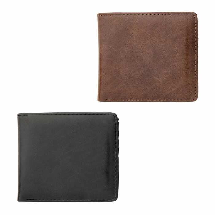 2つ折りタイプのお財布です。シンプルなデザインが特徴で、コンパクトながら小銭入れも付いていて使いやすい仕様です。シックなブラックとブラウンを展開。