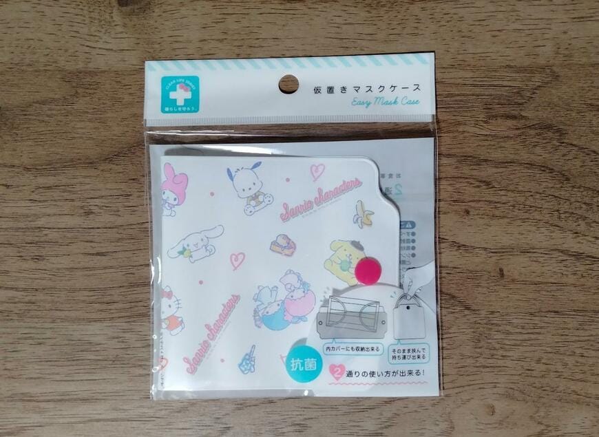 こちらがセリアで販売されている「仮置きマスクケース」です。商品パッケージにあるように「抗菌」仕様のアイテムとなっています。