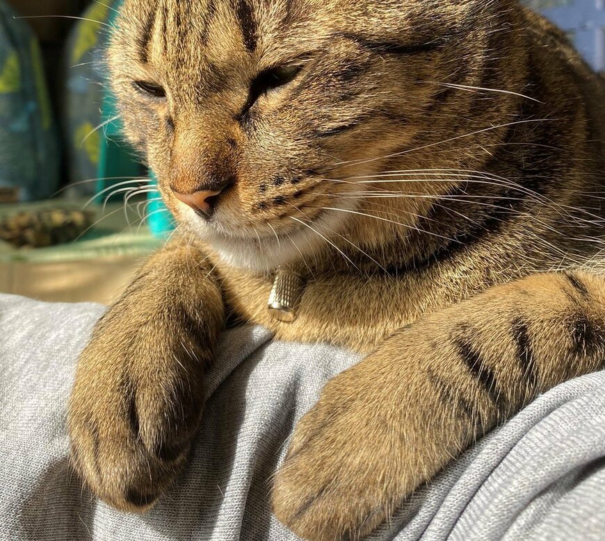 ちょうどよい高さと飼い主さんの温もりに、居心地のよさを感じていたのでしょうか。目を細めたその表情からは、安心しきっていることが伝わってきます。「ウットリ」とした面持ちに、こちらも笑顔になってしまいますね……!