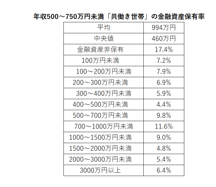 年収500〜750万円未満「共働き世帯」の金融資産保有率
