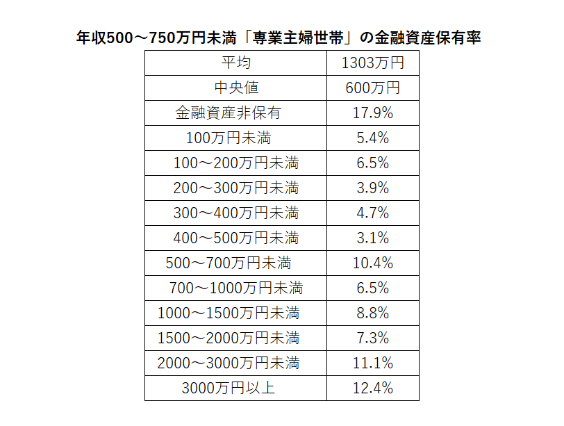 年収500〜750万円未満「専業主婦世帯」の金融資産保有率