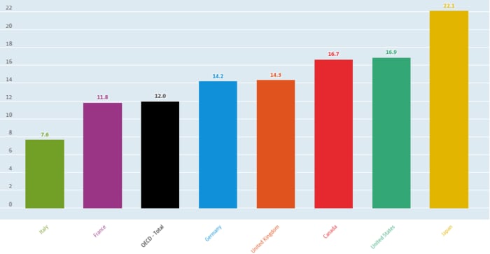 OECD(経済協力開発機構)「Gender wage gap」によると、日本はG7の中で男女の賃金格差が最も大きい国です。