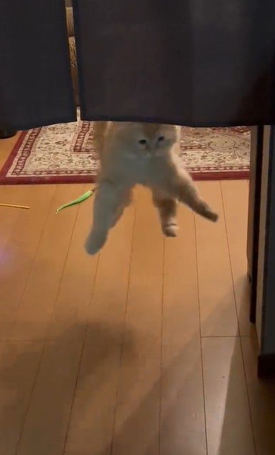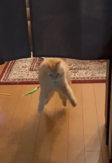 次の瞬間、突如「ウーニャァァ」と声を出し、突然ジャンプをきめるエマちゃん。何か気になる物でもあったのでしょうか……?