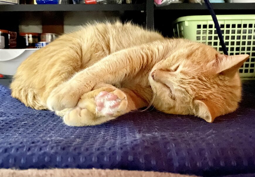 ふわふわ茶トラ柄の猫「モカ」くんの、可愛いくつろぎシーンに癒される