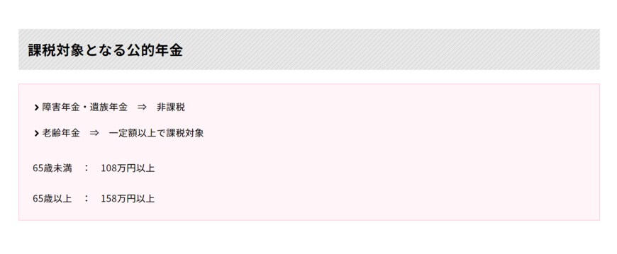 - 65歳未満:108万円以(基礎控除48万円+公的年金控除60万円)