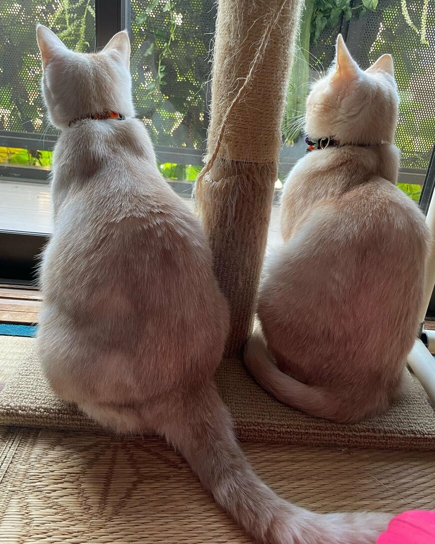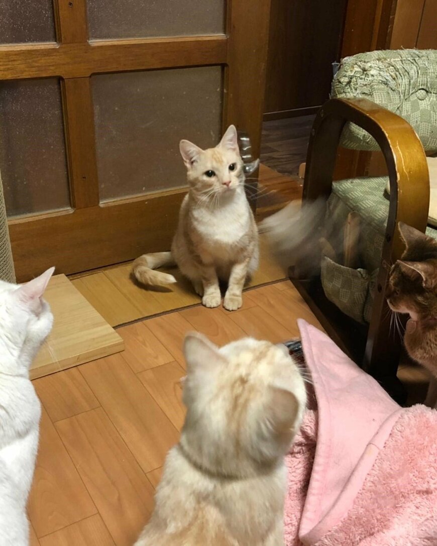 投稿では「心の友ゴローと、大好きな八郎と、強キャラ志乃南海に囲まれて、毎日本当に楽しそう」「全ての猫と人を上手に繋いでくれる、我が家で1番要になっているムサシ」と、ムサシくんと同居猫ちゃん達との関係についても明かされていた飼い主さん。