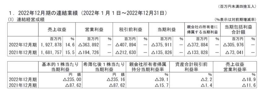 楽天グループ株式会社が2023年2月14日に公表した「2022年12月期 決算短信〔IFRS〕(連結)」によると、最終的な損益は3728億円の赤字でした。
