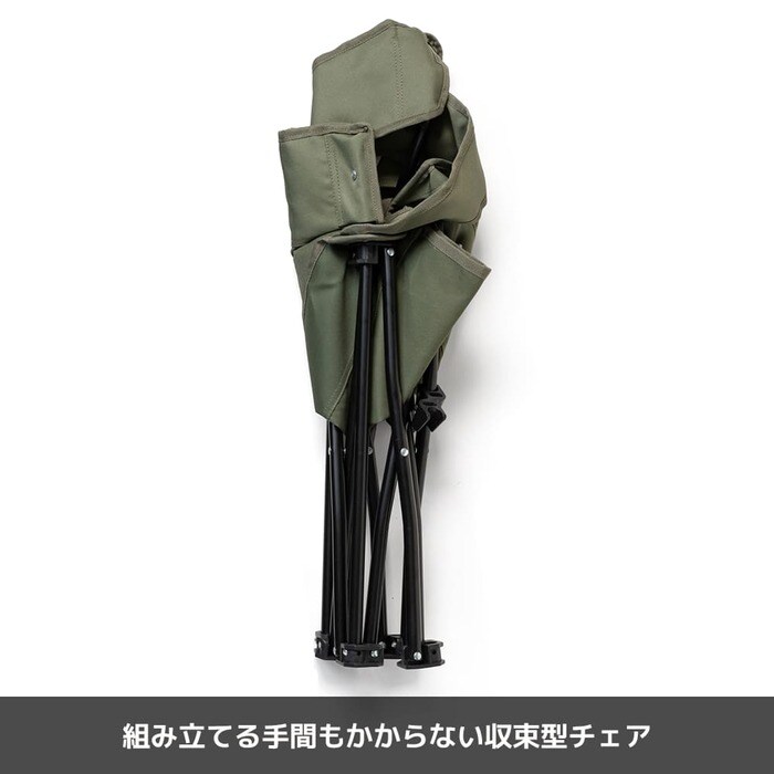 組み立て要らずな折りたたみ式のチェアは、時間を無駄にすることなく日常と野外をシームレスにつないでくれるアイテムです。さらに、本体生地に燃え広がりにくい加工が施されているのもうれしいポイントです。